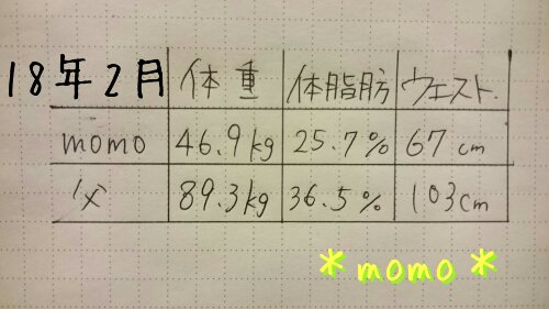 母は標準的なおばさん体型といった感じで体脂肪が多目なようです。でも自分よりも筋肉量が多いみたいで、これはお互いに意外でした。
