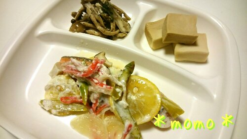 サーモンのレモン蒸しは「たまには魚が食べたい」というリクエストで買ってあった冷凍の鮭を使いました。