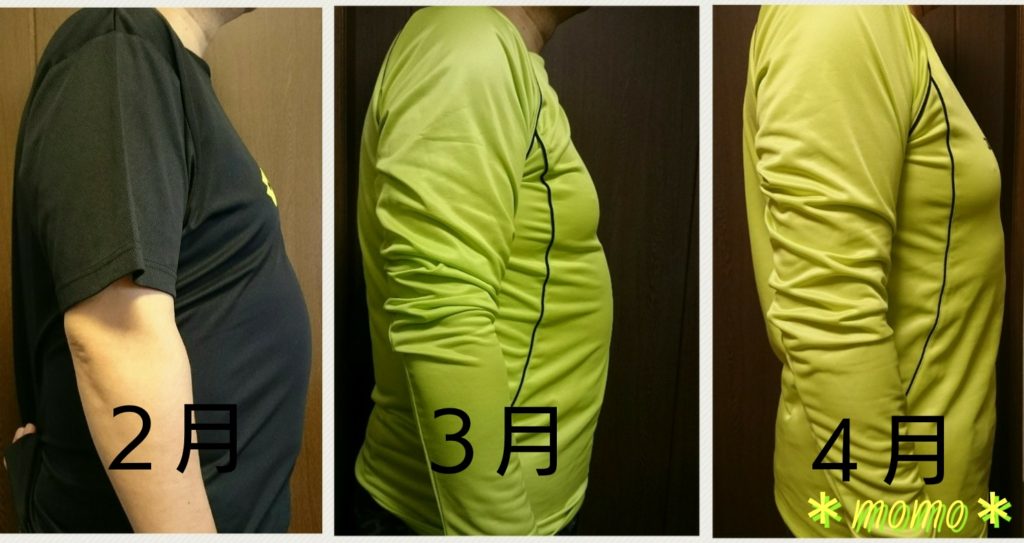 2月から4月現在まで、有酸素運動、筋トレ、体操、食事管理など、家族で協力しあいながら続けてきました。